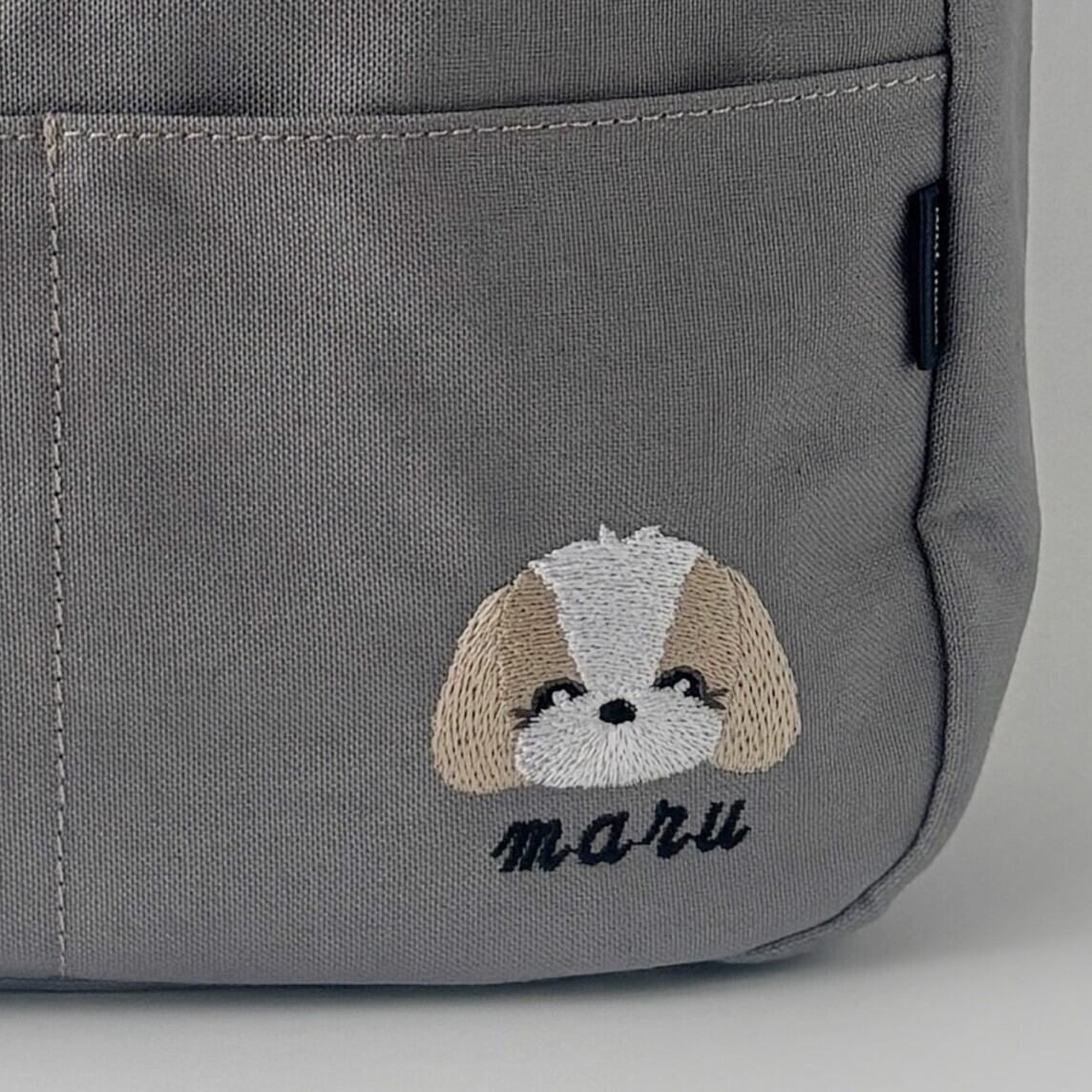 バッグには、基本デザインの犬刺繍を1匹分お入れしています。