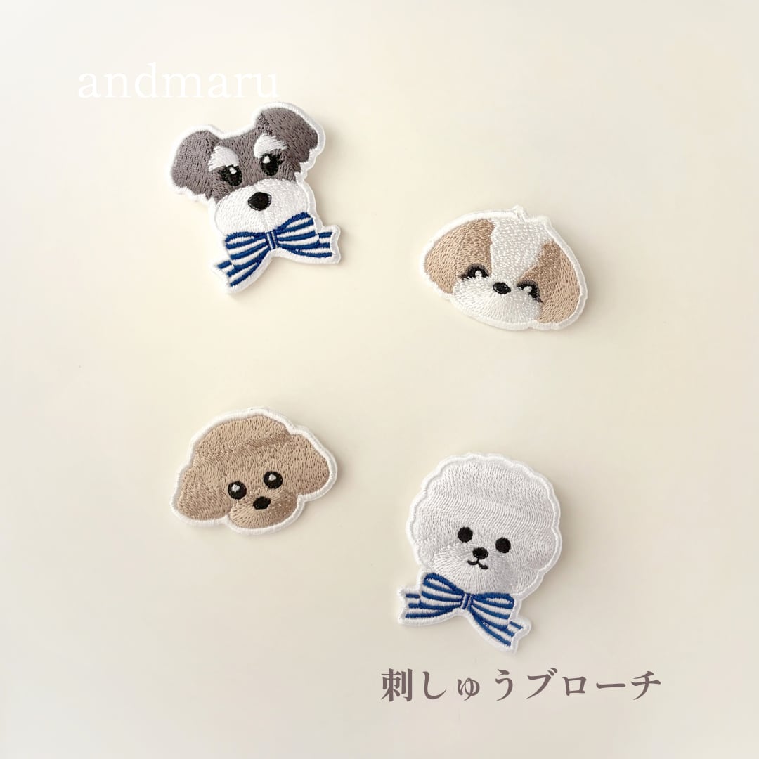 刺繍ブローチ(全犬種)|やさしい犬モチーフ*バッグやカートのワンポイントに
