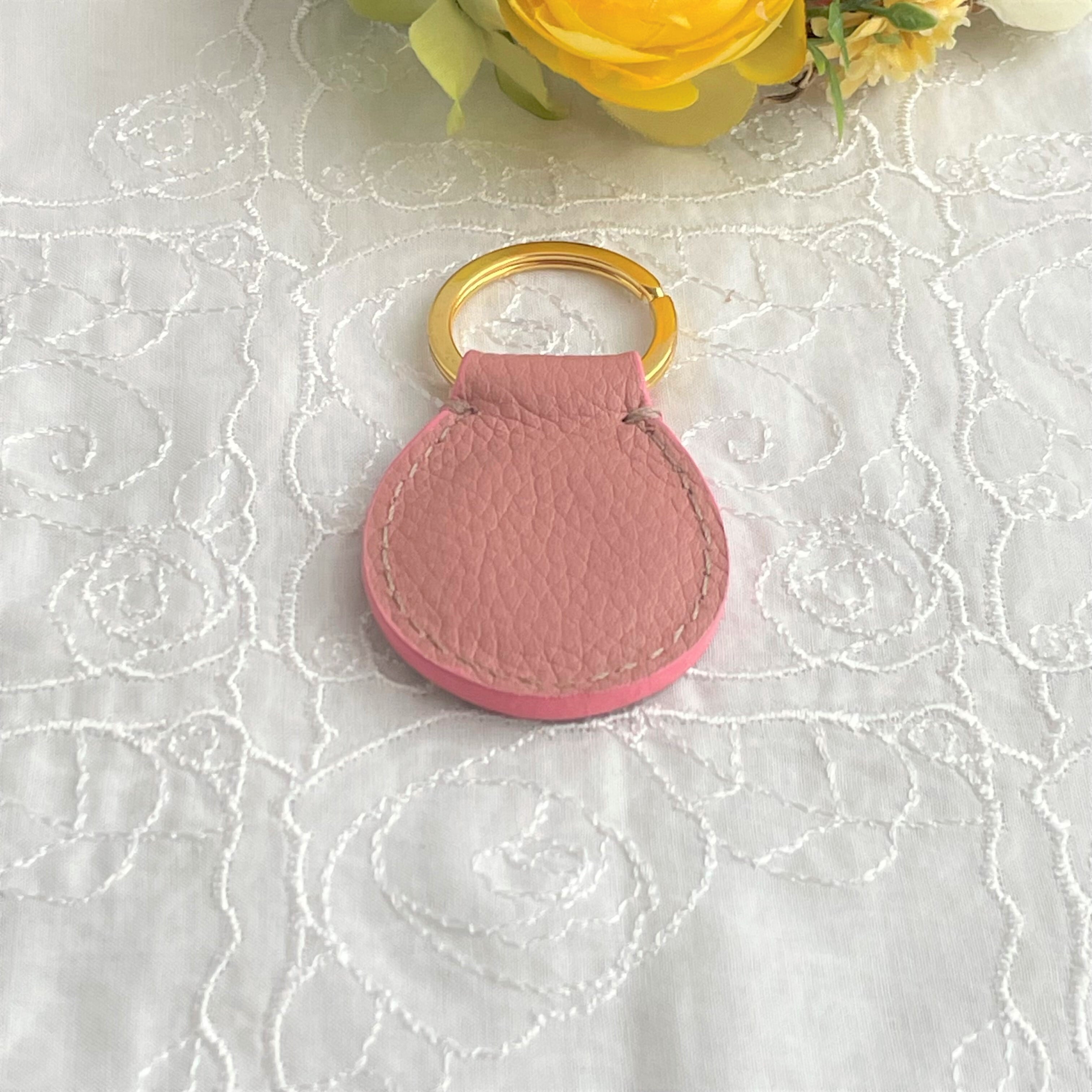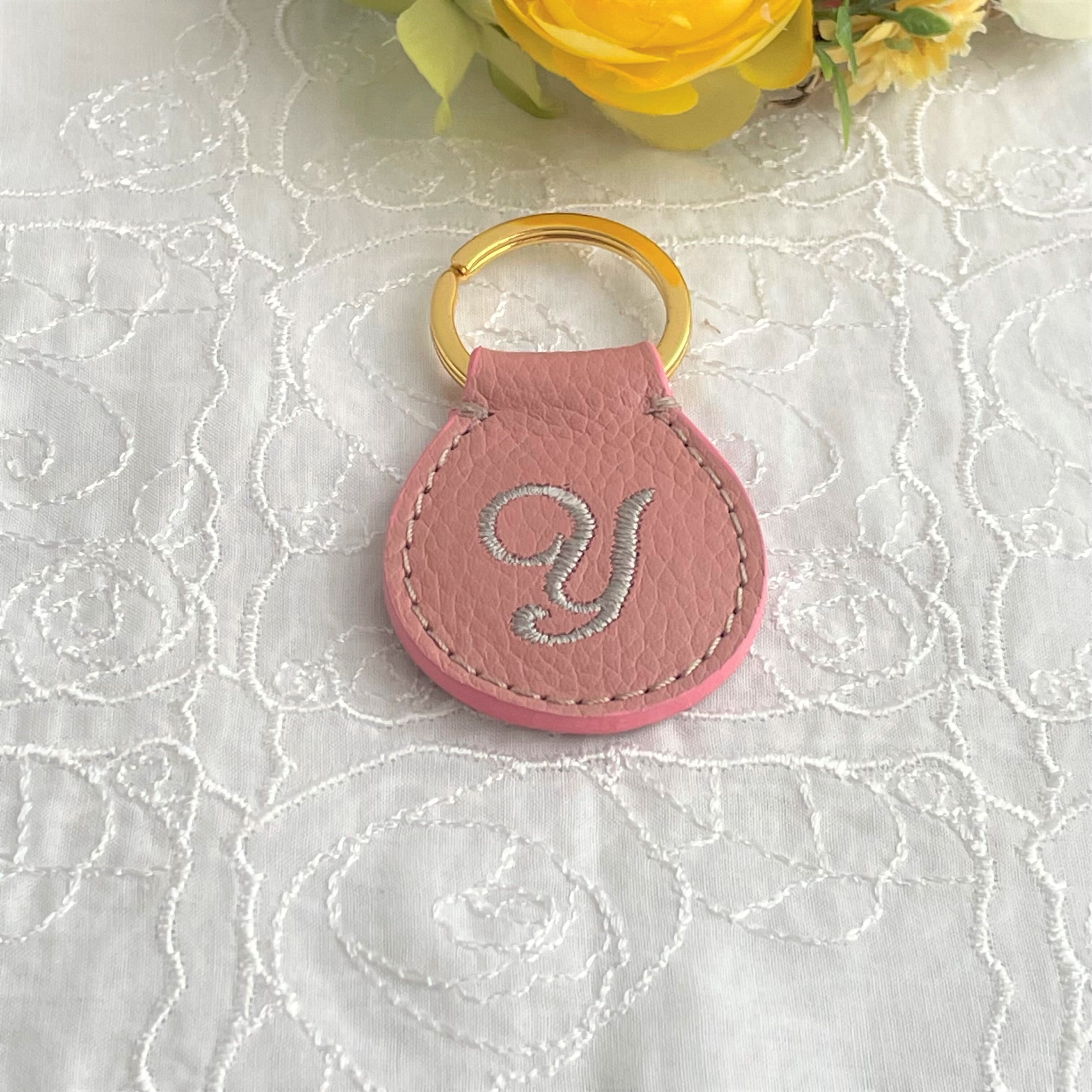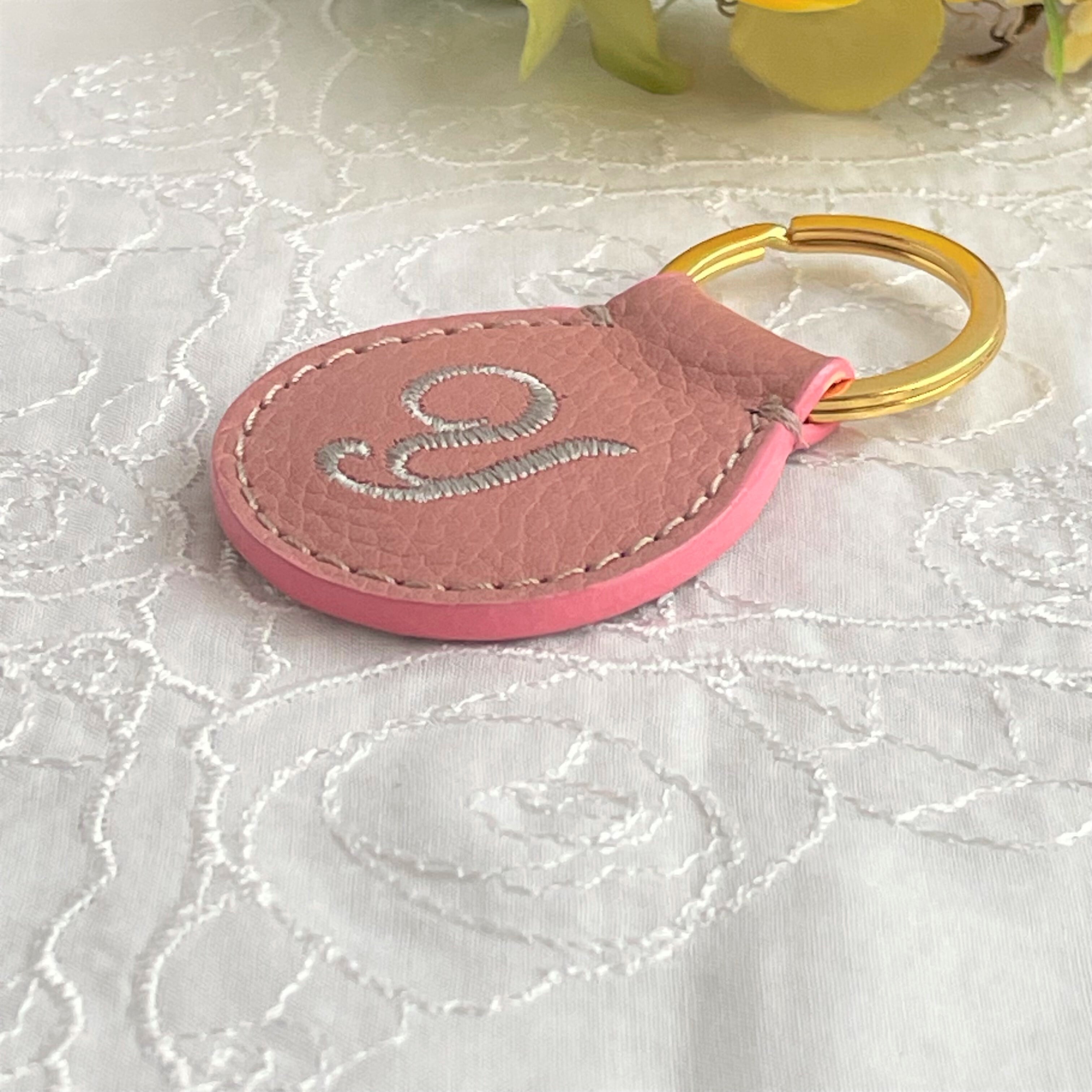 ベビーピンク【本革×刺繍】イニシャルキーホルダー*ギフトにも