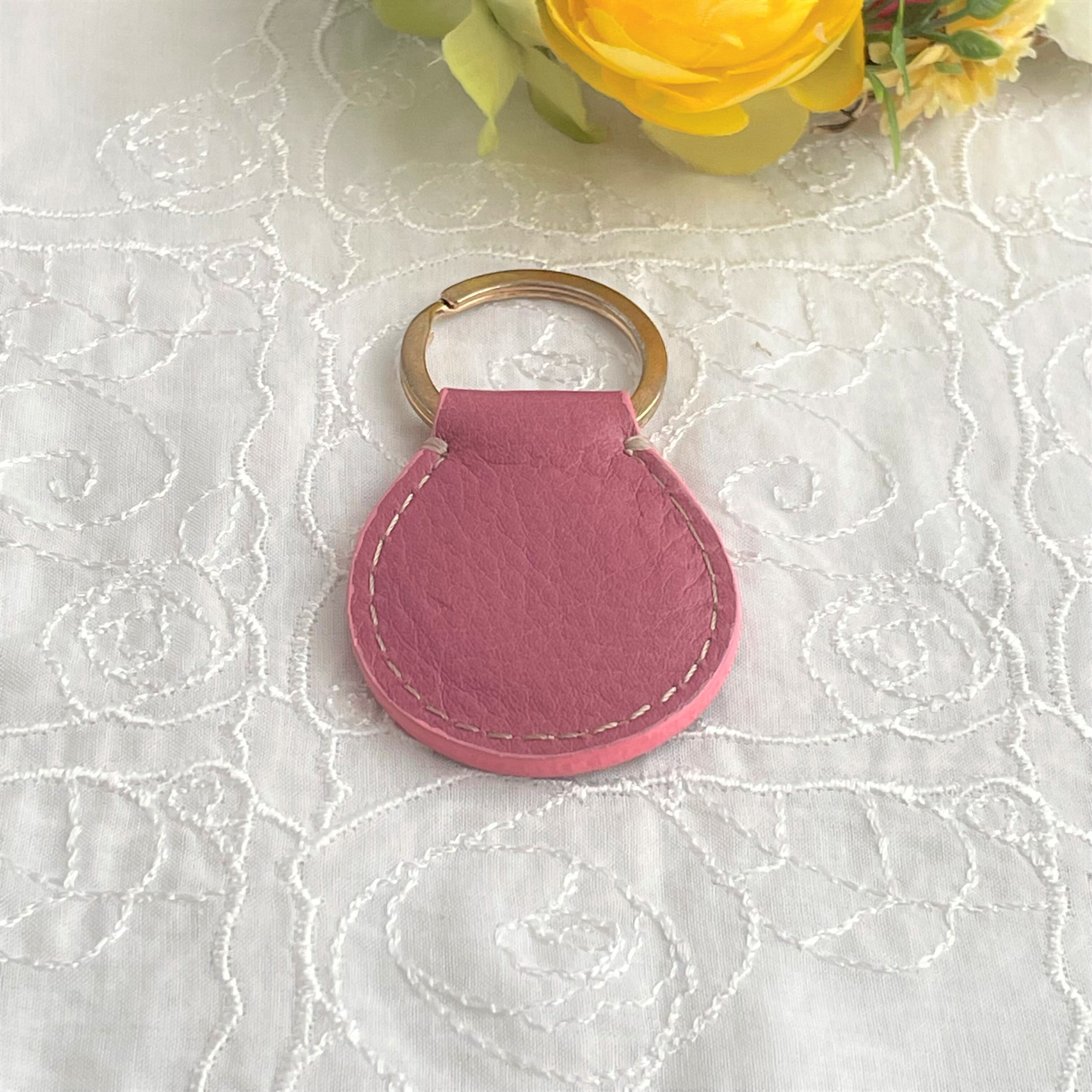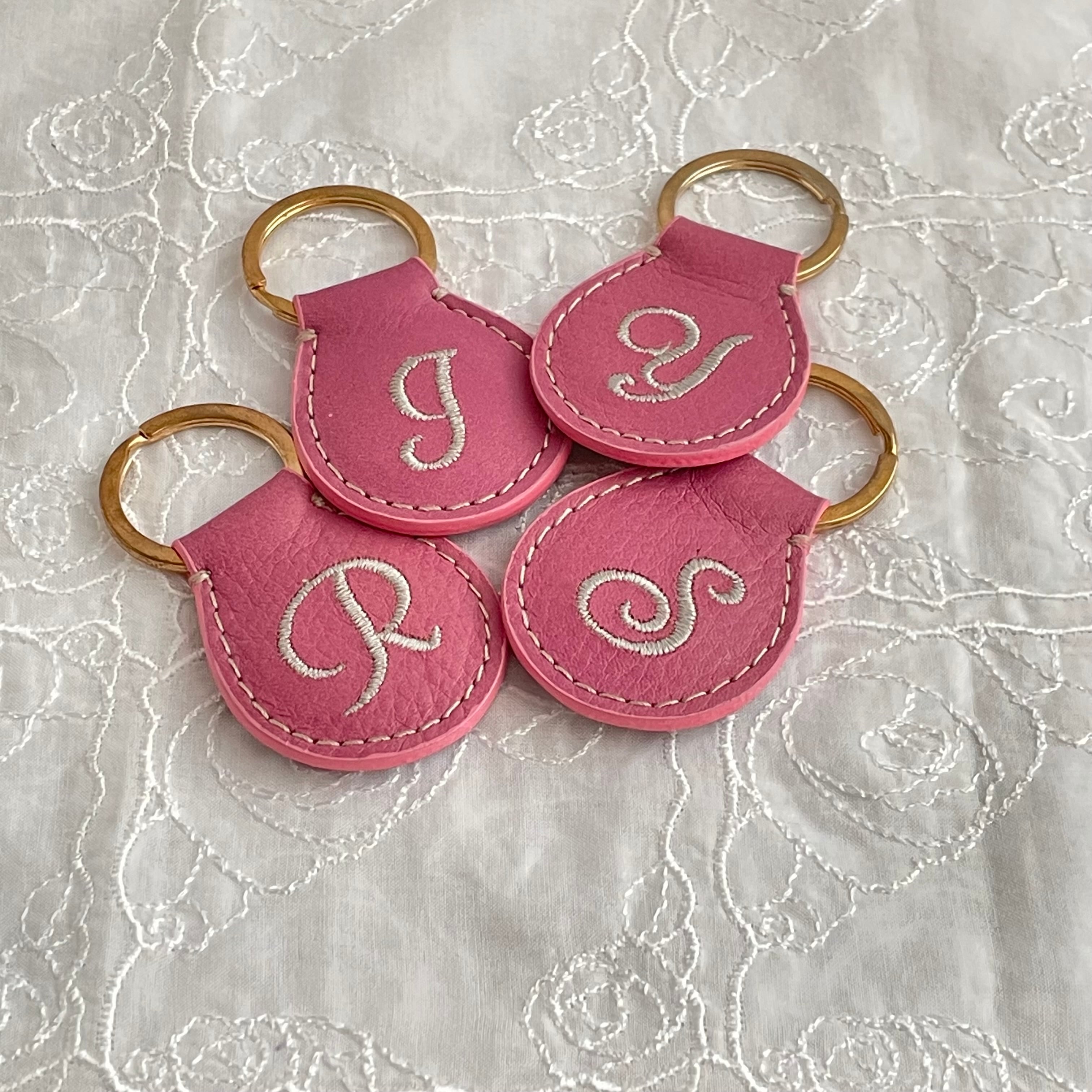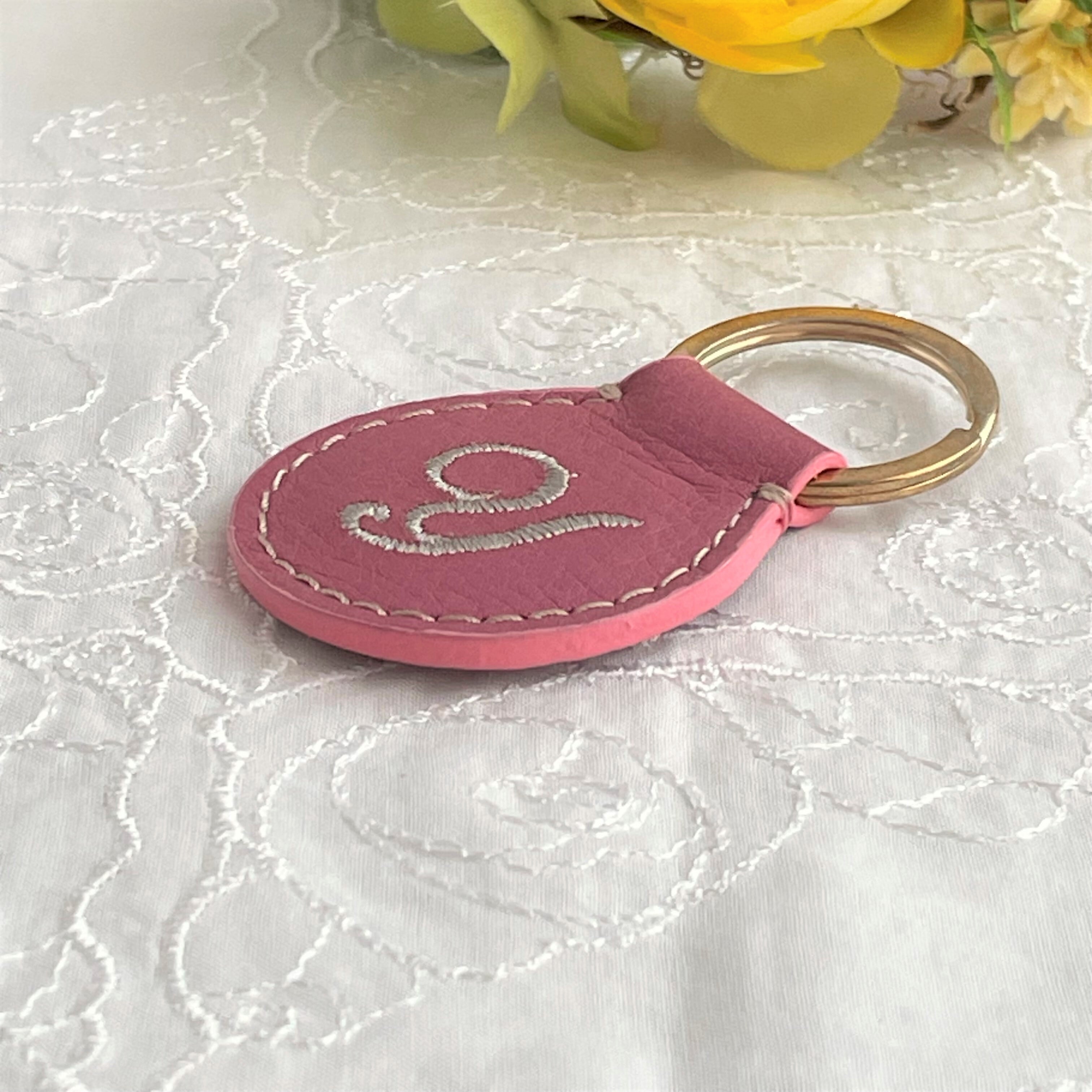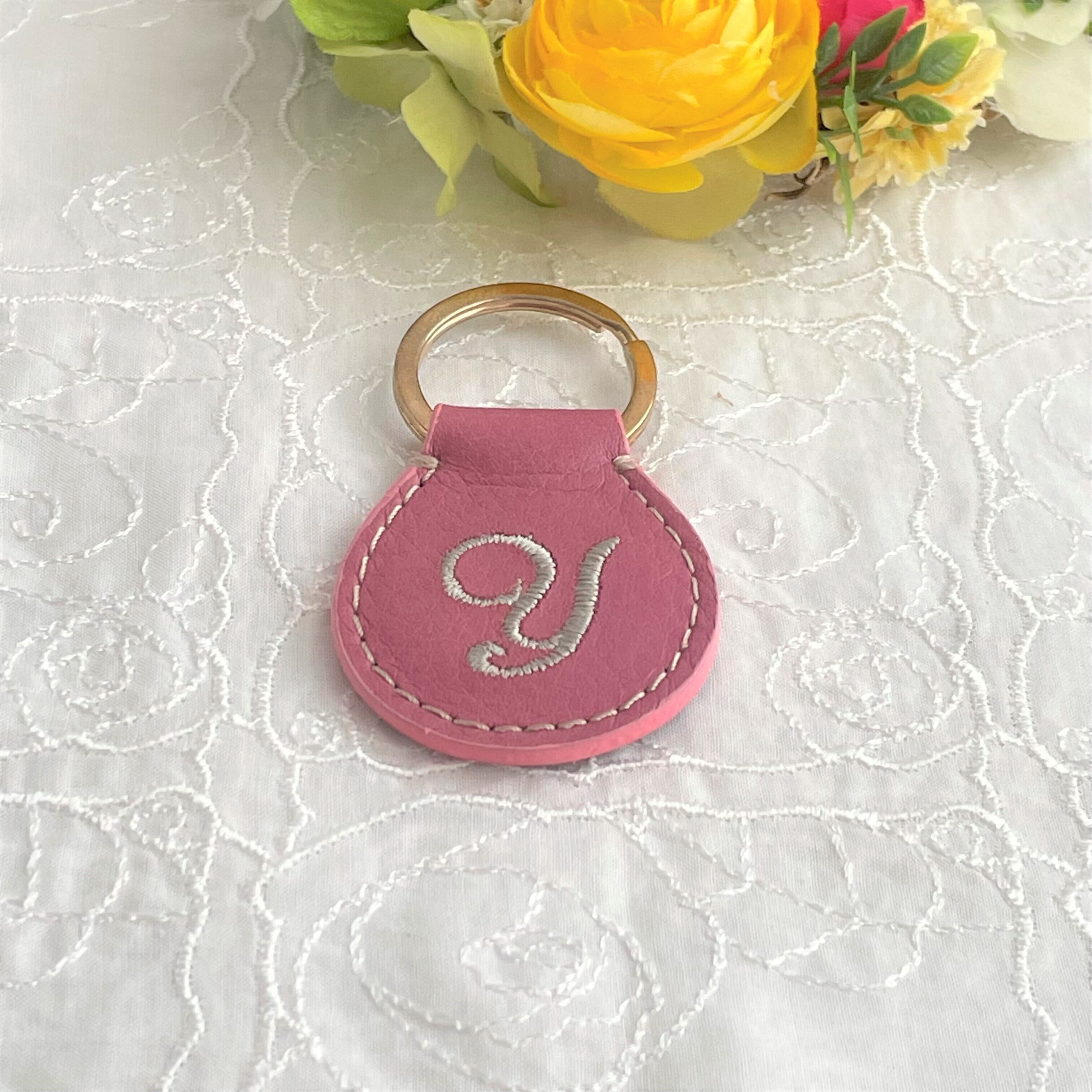 チェリーピンク【本革×刺繍】イニシャルキーホルダー*ギフトにも
