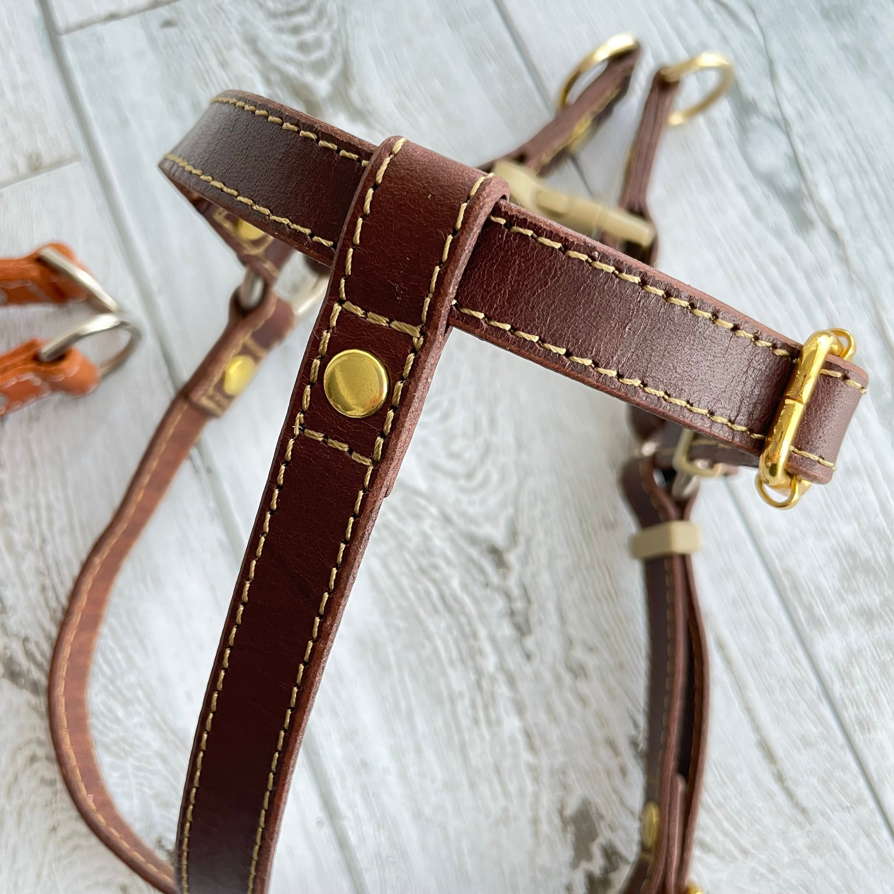上質な革で作ったハーネスはしなやかで丈夫であり、愛犬のボディにやさしくフィットします。