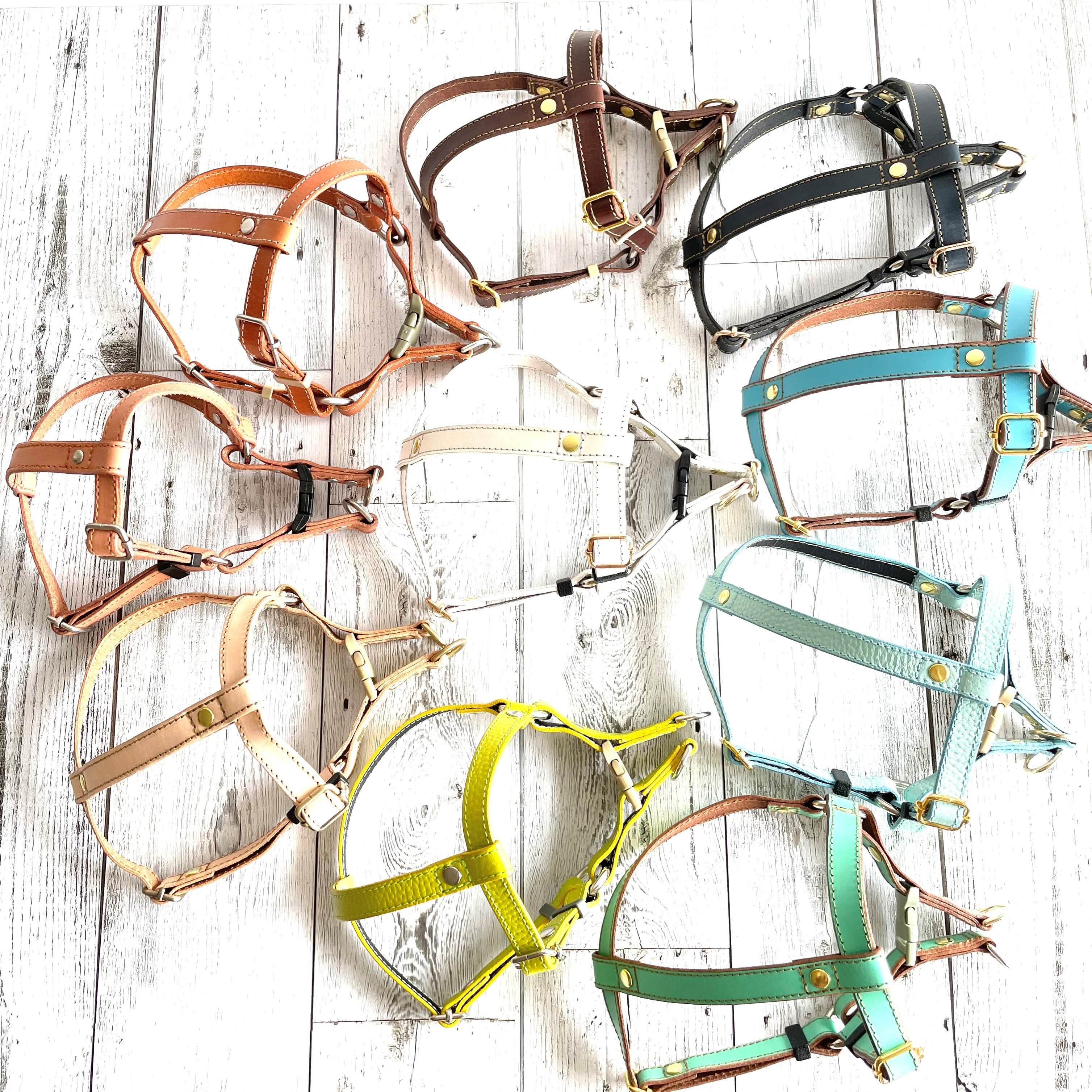 彩り豊かな本革で作られた、犬用ハーネスです。