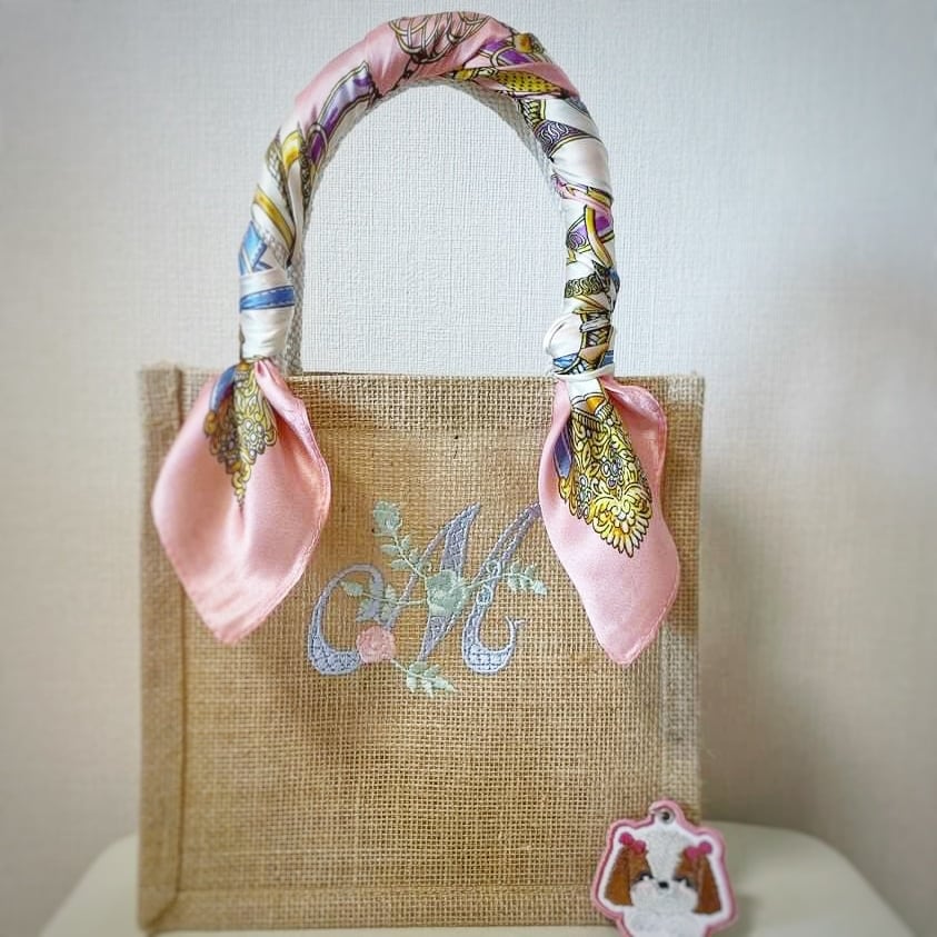 イニシャル刺繍のジュートバッグ