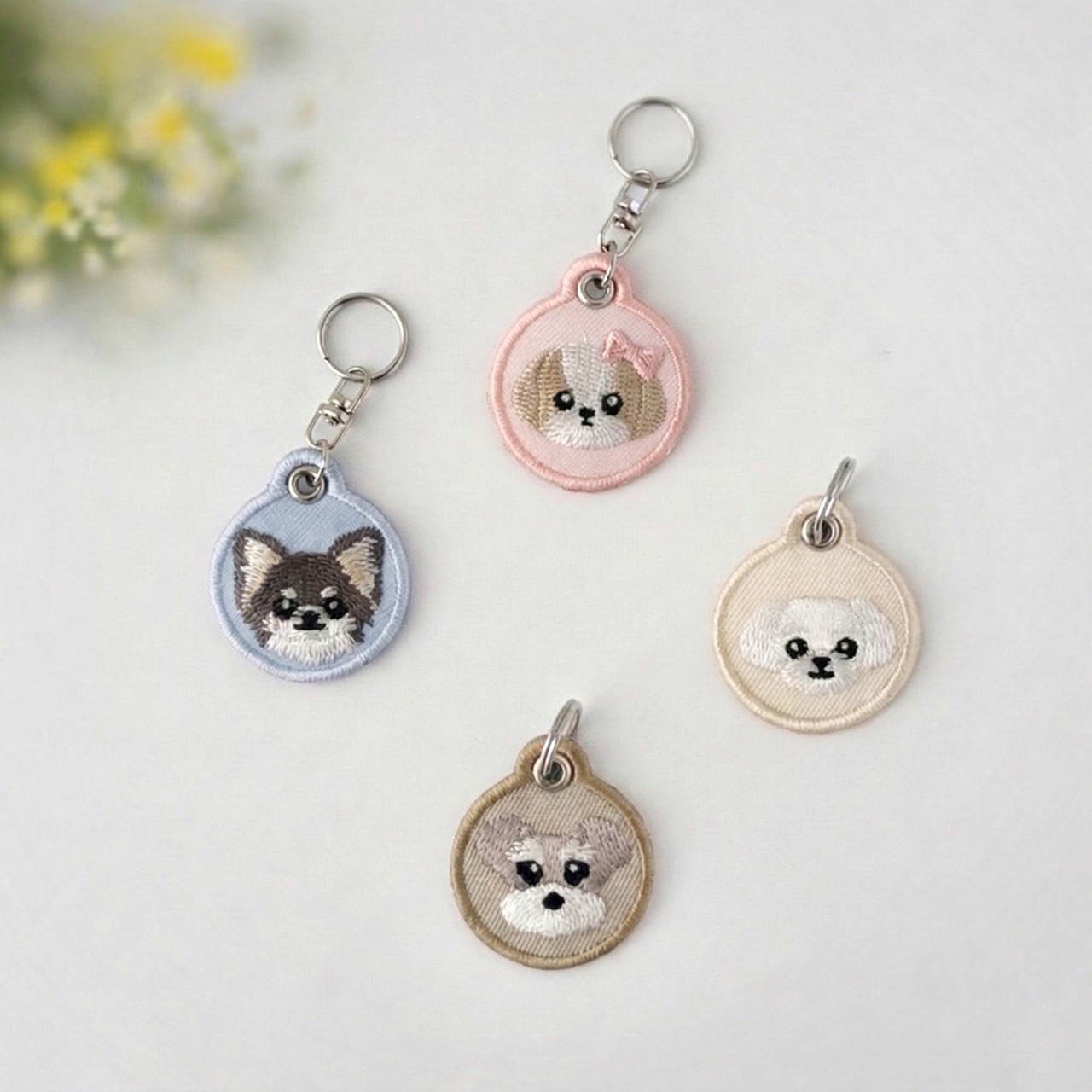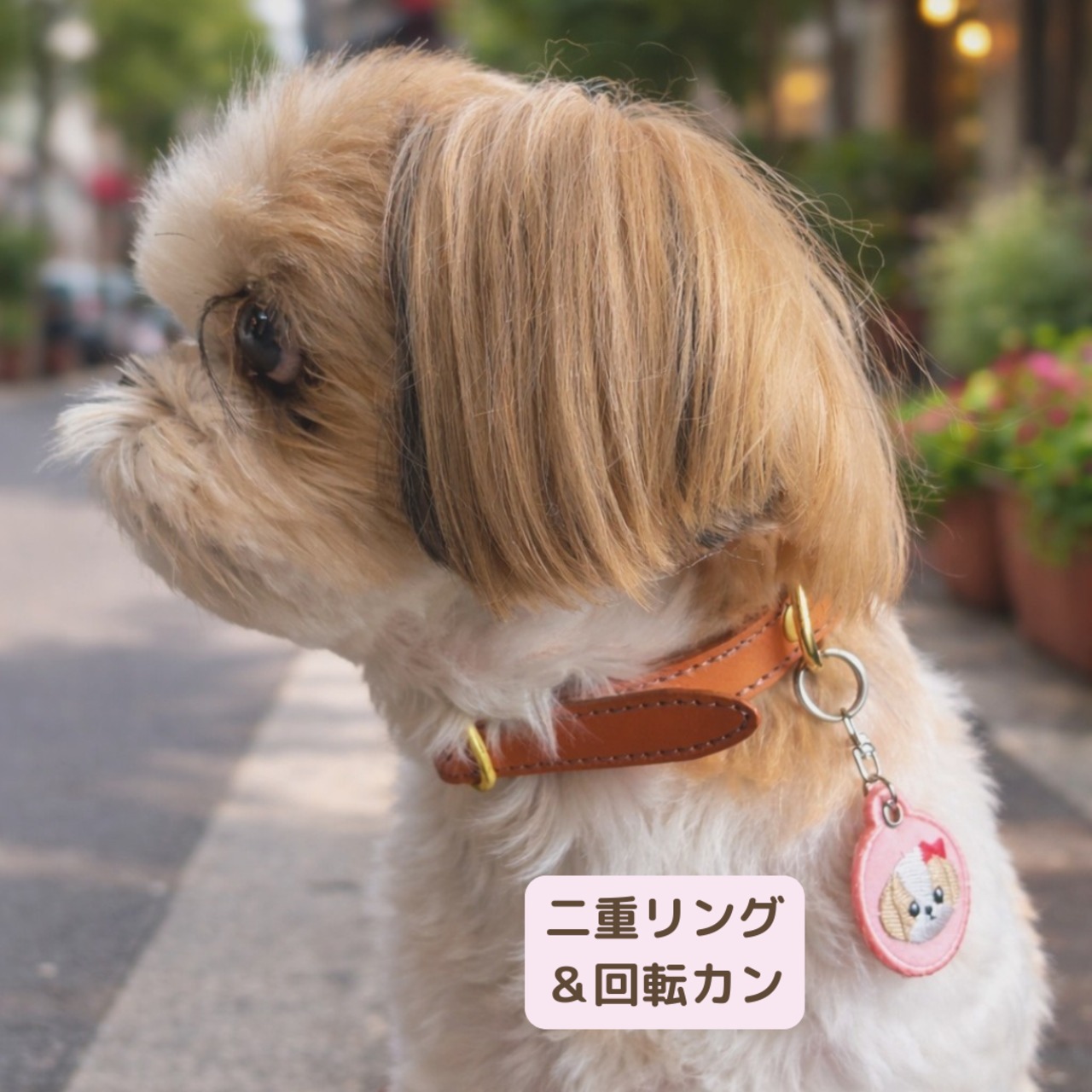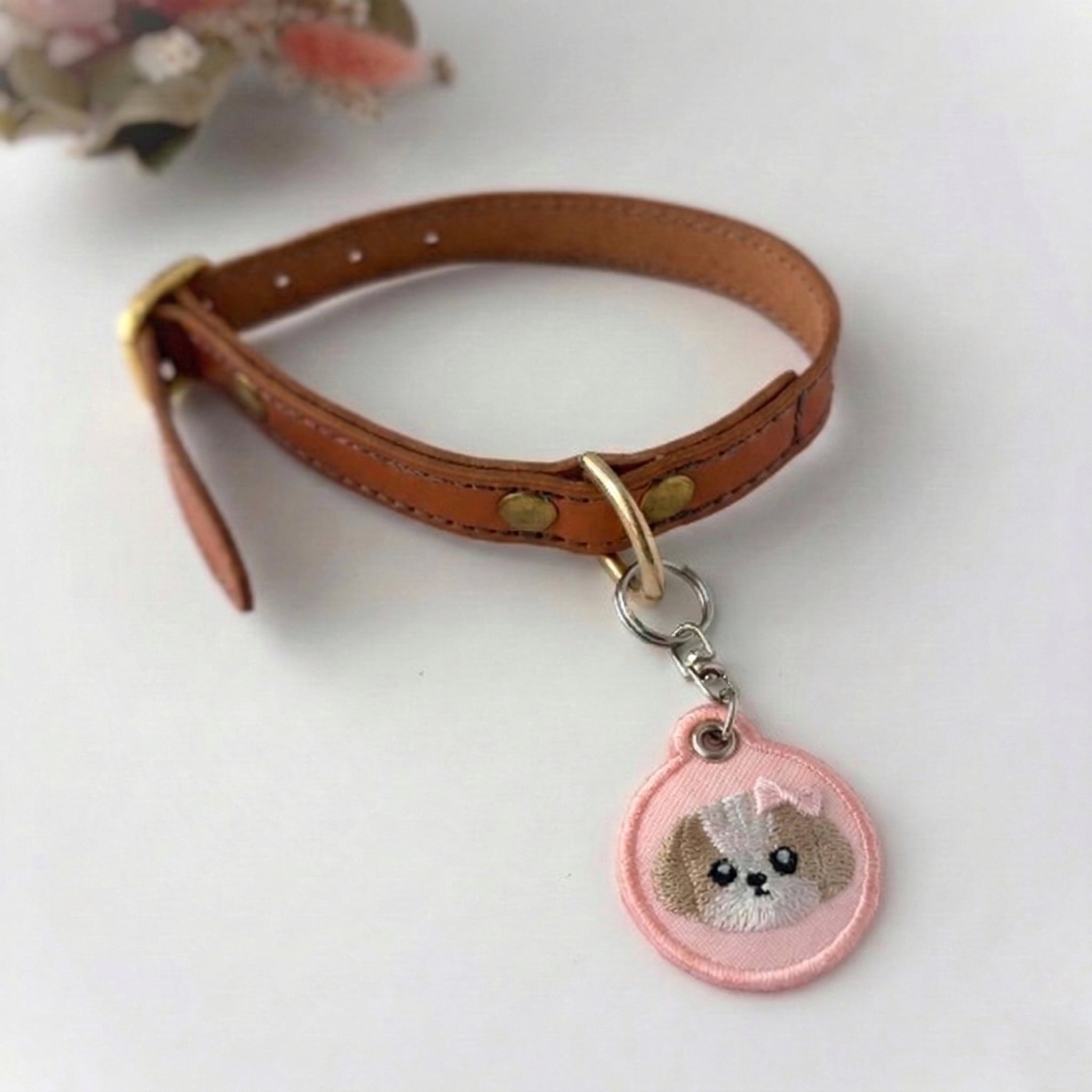 うちの子ネームタグ|迷子札にも*やさしい犬モチーフ刺繍のオーダー品