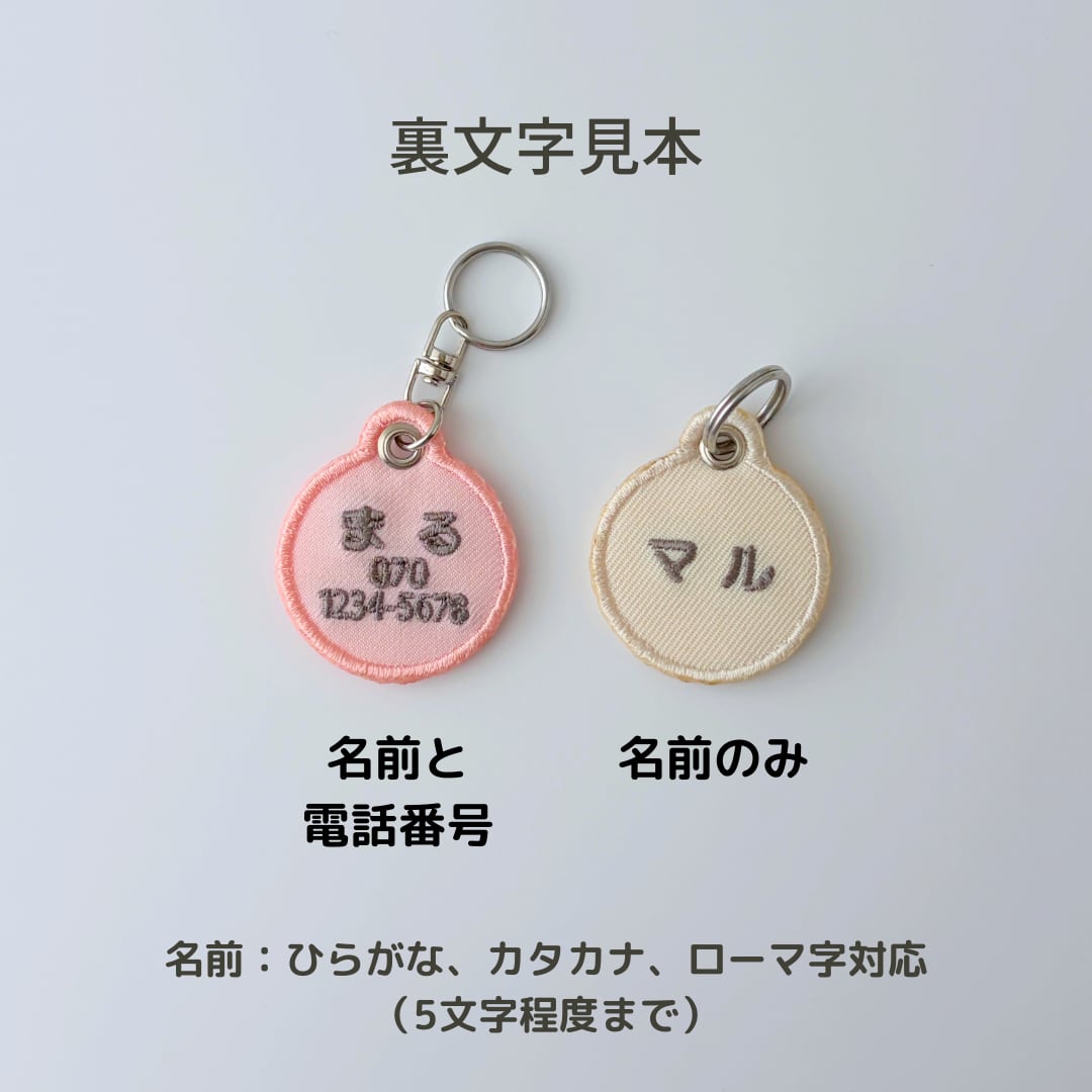裏面にお名前と電話番号を入れれば、迷子札としての安心感もプラスできます。