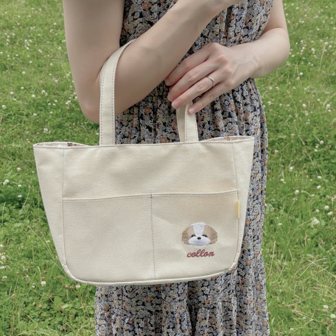 うちの子まるみトート(倉敷帆布)|名入れOK*やさしい犬モチーフ刺繍のオーダー品