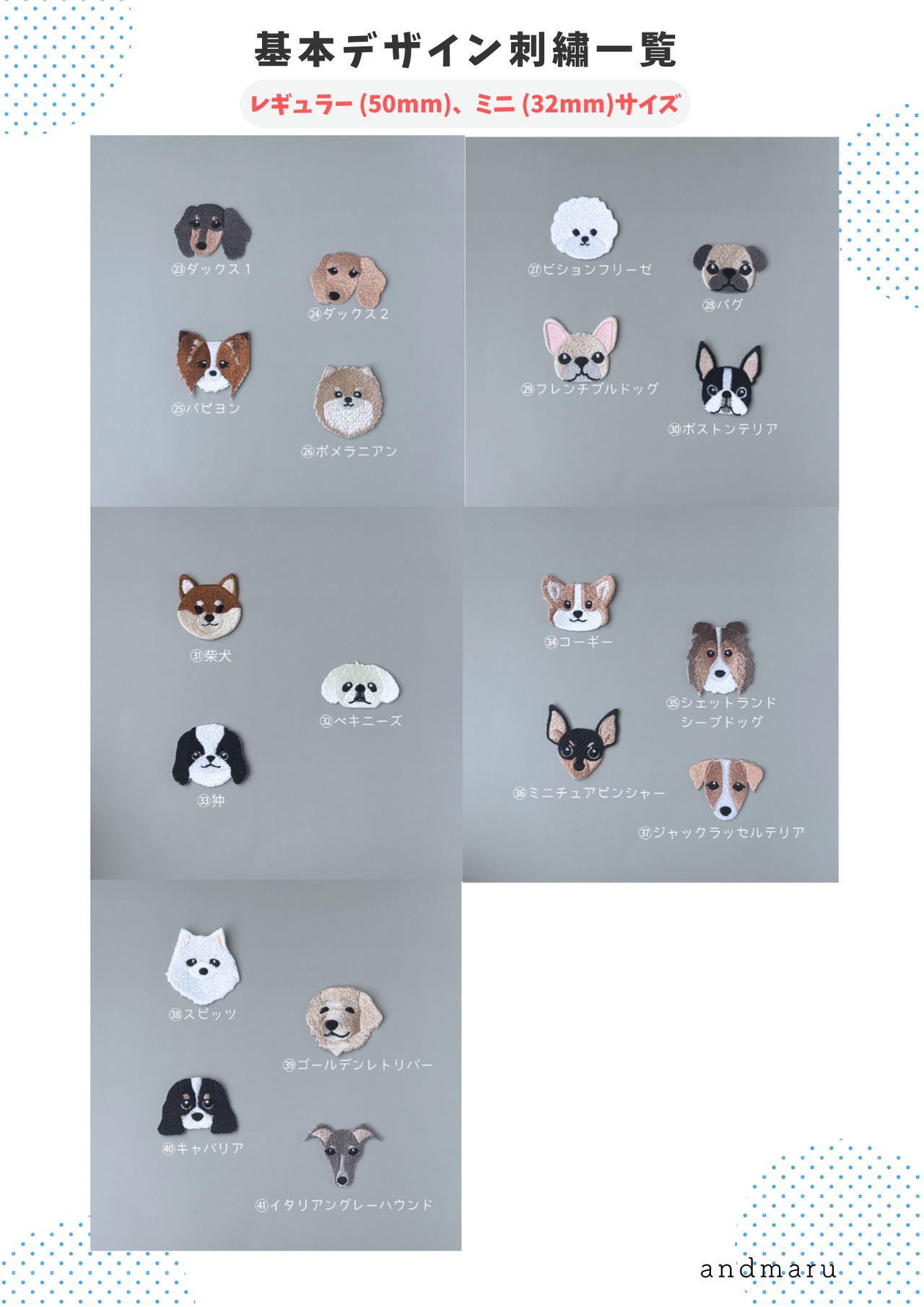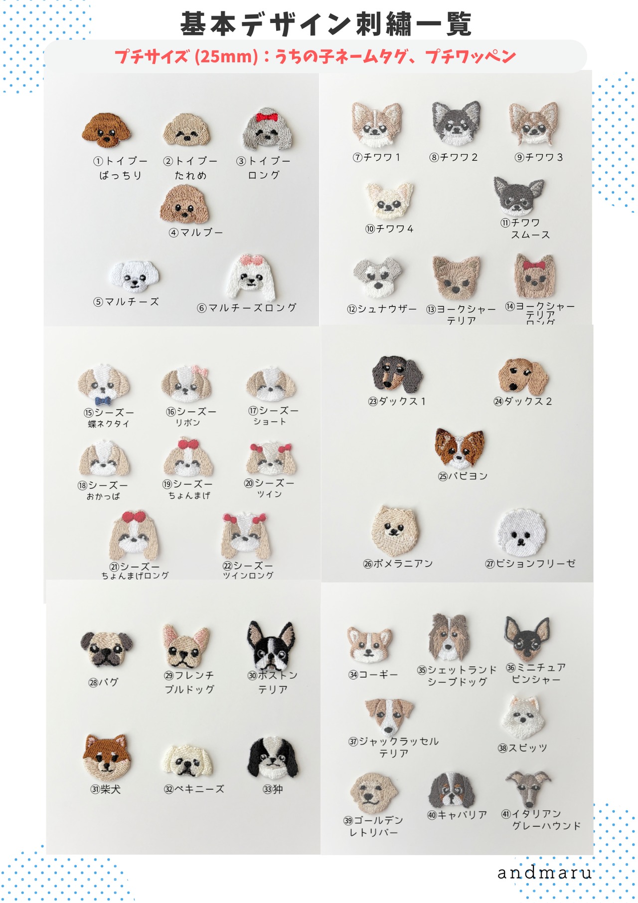 当店の基本デザイン刺繍一覧です