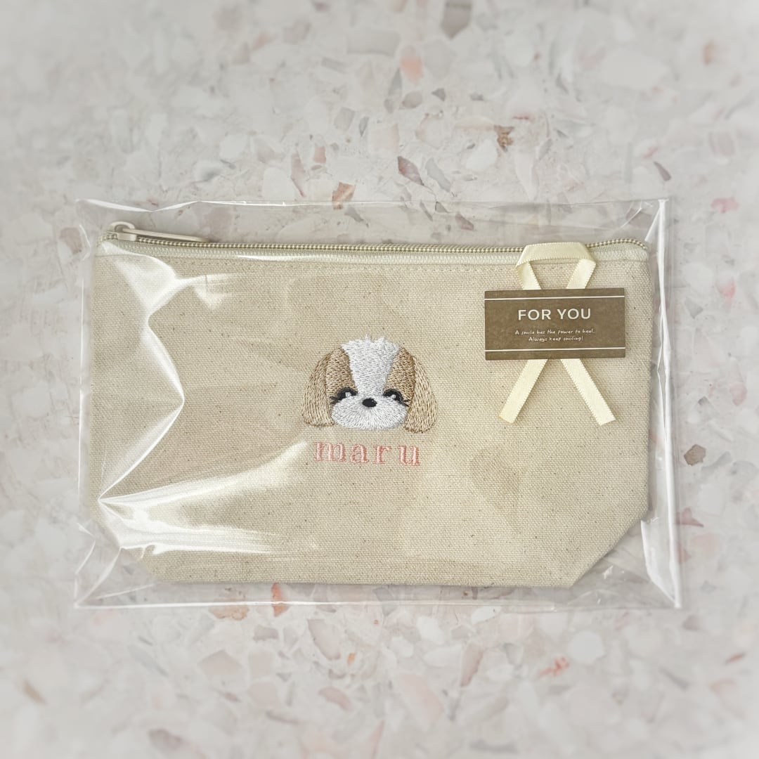 うちの子ポーチ|名入れOK*やさしい犬モチーフ刺繍のオーダー品