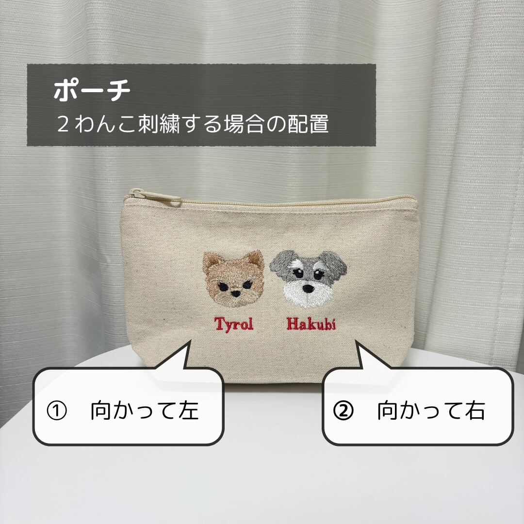 ポーチには、基本デザインの犬刺繍を1匹分お入れしています。